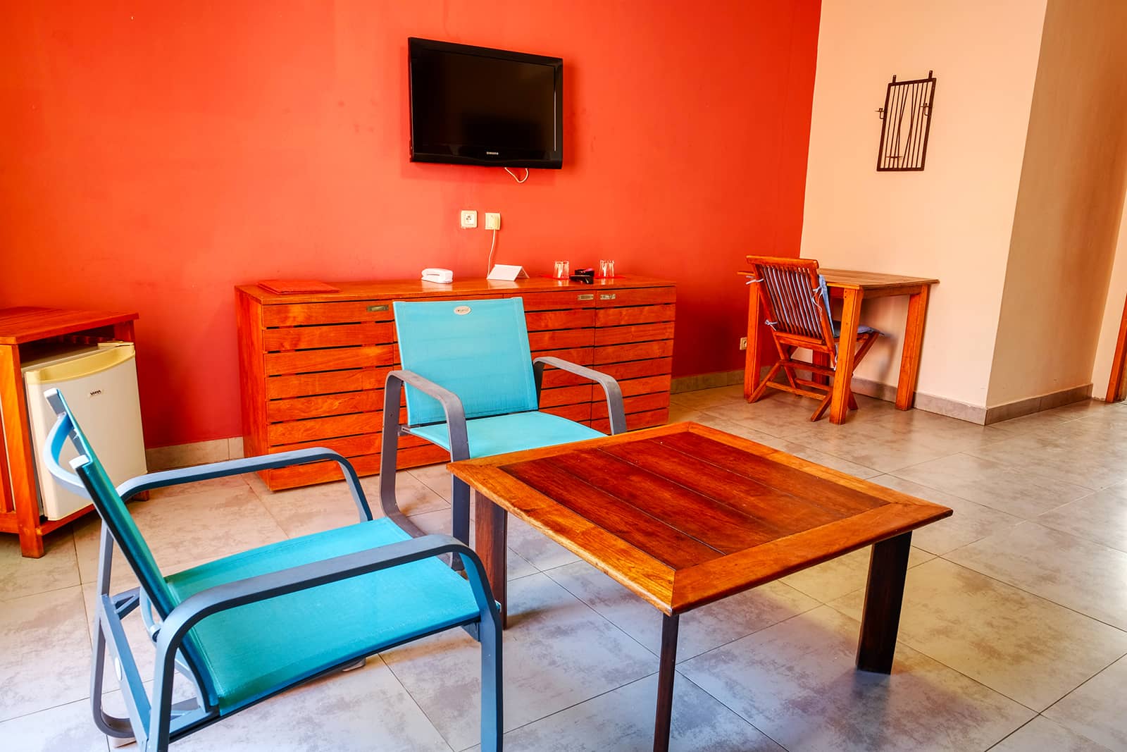 - Dans toutes chambres : Grands lits (160 cm), Wifi, TV satellite, mini bar, coffre fort individuel, climatisation.